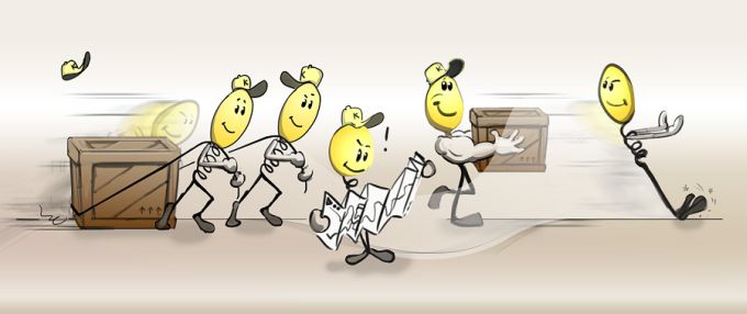 按图样的说明,工厂生产了该部件,打包,并标上数据库中的邮政地址。快递人员接上了头,来到工厂,取了包裹。他手上有详细的城市地图,沿着最便捷的路线,传送了包裹,任务完成!