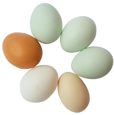 不同的编码基因会控制在白色基底的蛋壳上“添加”不同的色素,于是乎鸡蛋便有了一系列的颜色。大多数常见的家养鸡种如罗得岛红鸡产褐色蛋,莱亨鸡产白色蛋。阿拉卡那鸡产蓝色蛋,该品种最初来自智利的阿拉卡那地区。如果将产蓝色蛋的品种与产褐色蛋的品种杂交,可能会生出绿色的鸡蛋。但其实蛋壳的颜色并不影响鸡蛋的营养价值。