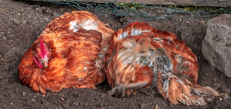 据观察,鸡会躺下,故意把尘土颗粒弹到它们的羽毛上。它们这样做居然是为了保持清洁! 鸡洗尘土澡是为了除去多余的油、虱子和螨虫。此外,这还有助于保持它们的外层羽毛的防水性。人们观察到,笼中养育的母鸡甚至在没有污垢的条件下依旧会表现出洗尘行为。甚至没有羽毛的变异品种也会尘洗。[15] 这表明尘洗并非来自后天学习,而是一种纯粹的先天本能,是一种被创造在其内部的设计特征。