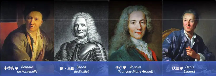 法国18世纪最著名的反对大洪水和圣经权威的人物包括:伯纳德·德·丰特内尔 (Bernard de Fontenelle,1657-1757)、伯努瓦·德·马耶 (Benoît de Maillet,1656-1738)、伏尔泰 (Voltaire, François-Marie Arouet,1694-1778)、和丹尼·狄德罗(1713-1784)。
